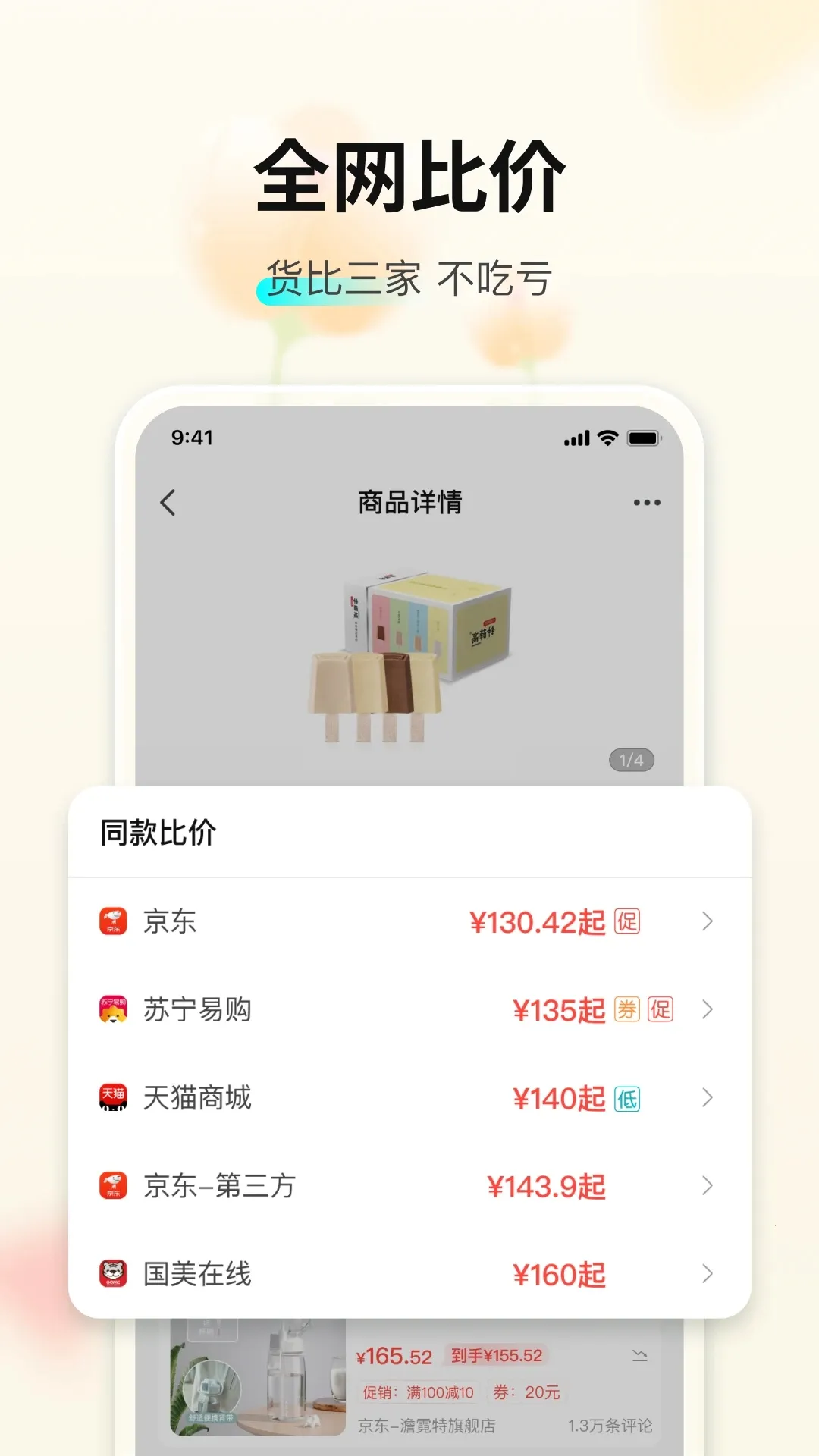 1. 全网比价超便捷:支持京东、天猫、淘宝等各大电商平台,轻松实现货比三家,让你快速找到同款商品的最低价格。
