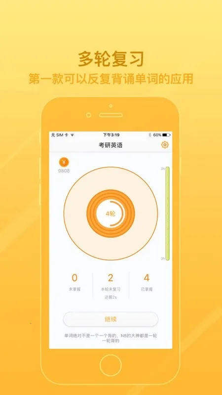 多轮复习:可反复背诵单词,完成一轮后能不断重启下一轮,全量或只背不熟的单词,严格按200个单词一个wordlist安排复习计划,鼓励多轮巩固记忆。