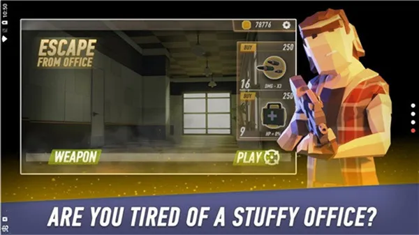 想知道怎么逃离办公室吗?这款逃离办公室游戏就能满足你!它是一款休闲益智的逃生小游戏。玩家扮演公司上班的大叔,目标是逃离公司。游戏有多种关卡,每个关卡谜题不同,能激发你的挑战欲。遇到困难别慌,有提示功能帮你。玩法上,要运用智慧和观察力解决谜题,收集物品来解谜或开门,还能与同事互动获线索。游戏优势明显,过程需耐心毅力,能让你体验成功逃脱的喜悦。独特的职场特色故事、新颖的玩法,带来全新体验。画面卡通简约,减轻视觉负担。操作也简单,点击右下角play开始,选地图后击败敌人过关就能拿奖励。快来试试这款有趣的逃离办公室游戏吧!