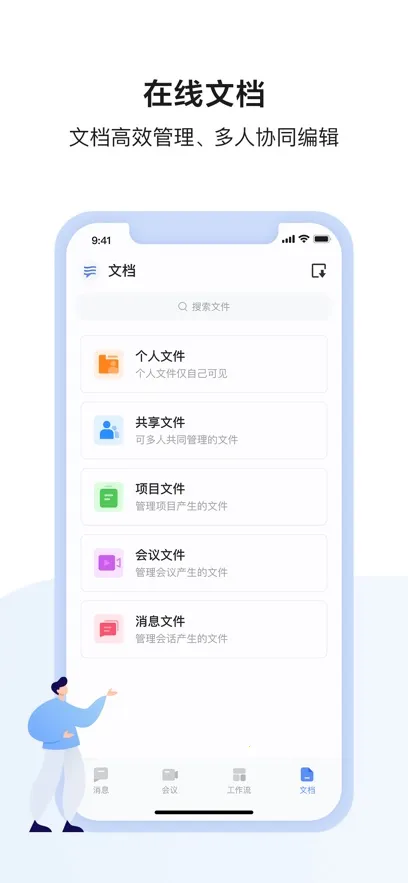 智能会议体验优:多方接入高清音视频会议,单个视频会议支持520方稳定接入。快速加入会议,外部人员通过浏览器即可加入。即时通讯时可随时发起高质量音视频会议。会议协作支持语音通话中的屏幕共享。智能排班直观查看同事日历,预约会议无需反复沟通。