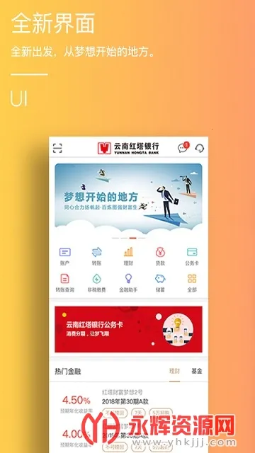 云南红塔银行属于商业性质银行,其前身为2006年5月26日开业的玉溪市商业银行,2015年引入多方投资入股。云南红塔银行手机银行客户端是一款超棒的金融软件。它功能超齐全,能帮您查询账户、转账汇款,还覆盖了大部分个人银行业务,像投资理财、公务卡、网络贷款等八大模块。界面全新设计,扁平化风格,美观清爽,重点信息一眼看清。有多种安全防护措施,保障您的资金、数据和信息安全。支持自助注册,借助二三类账户实现电子账户注册,无需去柜台。还有生物识别技术,指纹登录超便捷。能满足您住房装修、购买耐用消费品、旅游、教育等资金需求,带来无渠道差异一体化的便捷服务感受,让您轻松享受金融服务,快来下载体验吧。