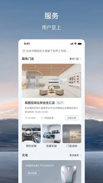 4. 便捷服务体验:支持线上挑车购车,享受专业汽车服务、官方资讯与售后;可一键导航到店、查询电站扫码充电、进行维修保养;能赚取积分兑换礼品,参加线上线下活动。