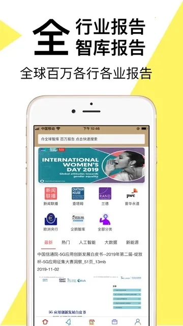 1. 海量报告汇聚:汇聚全球百强智库,拥有百万中英文报告,无论是简单搜索标题还是深入全文搜索,都能轻松实现,帮您快速找到所需报告。