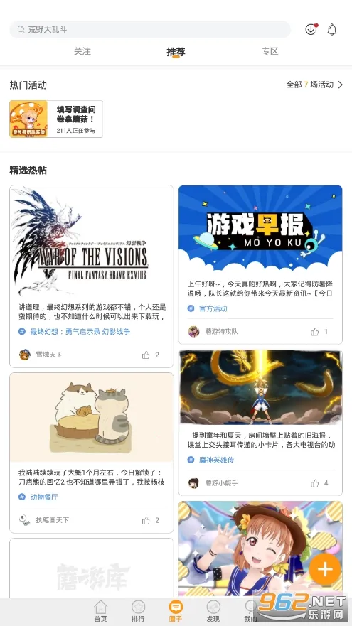 3. 具备独特的圈子专区,玩家可在此分享攻略、交流游戏经验和技巧,还设有排行榜,实时更新,由玩家热心推荐,好玩的游戏一目了然。