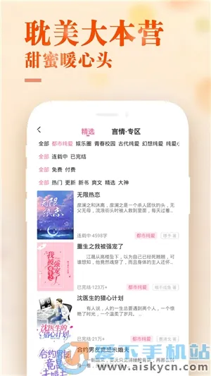 1. 海量小说免费阅读,类型丰富,涵盖耽美同人、言情等多种类型,无论是青春校园、穿越古风还是玄幻等题材,都能轻松找到。所有小说均可在平台上免费阅读观看。