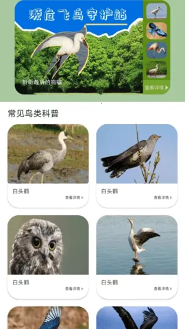 1. 丰富鸟类知识:提供常见鸟类资料,助您轻松识鸟,还聚焦濒危飞鸟信息,传递生态保护理念,让您更了解鸟类世界。