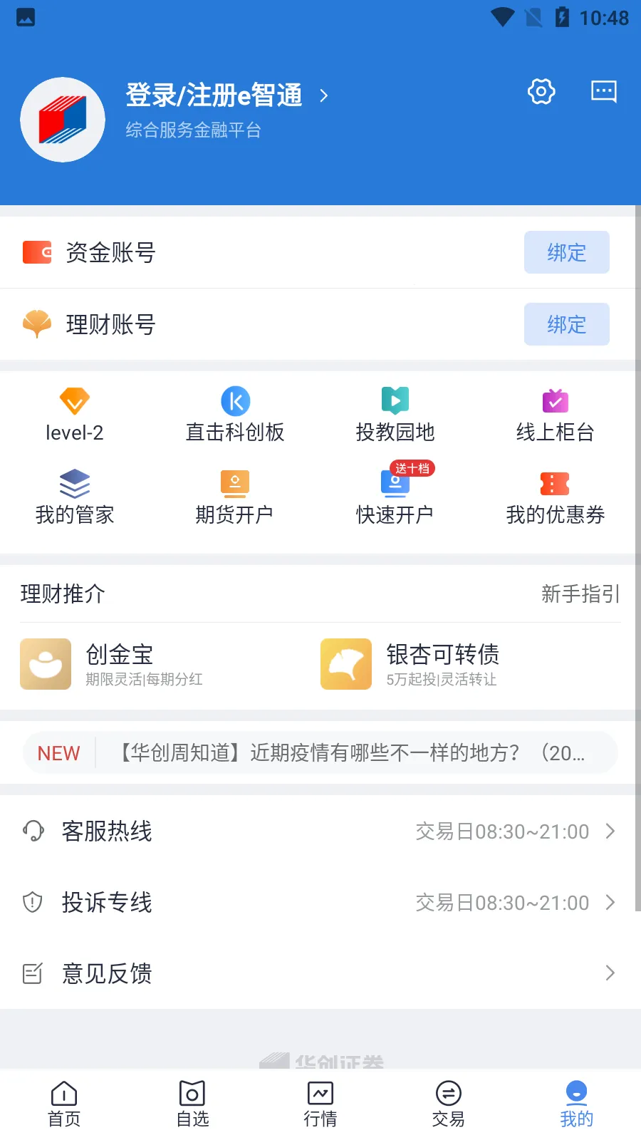 华创e智通是华创证券推出的财经炒股软件,集股票开户、交易、行情及多种理财功能于一体。有独家研报、投顾服务等,支持多种交易,通过大数据分析保驾护航,提供一站式便捷理财体验 。