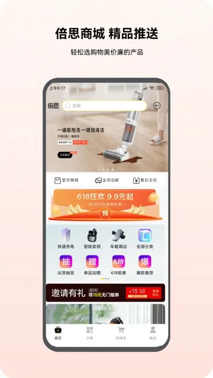 3. 电商生态融合:内置倍思自营商城,提供正品保障及限时活动。