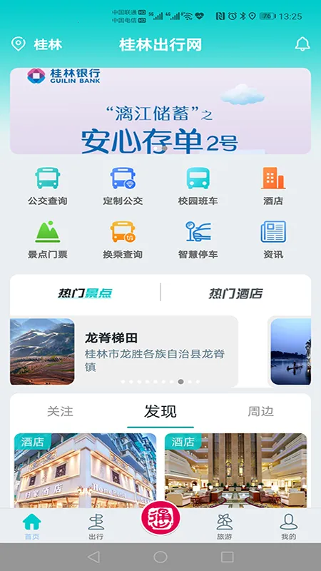 桂林出行网是款超实用的出行辅助软件,专为想去桂林旅游的朋友打造。它功能超强大,能帮咱快速找到桂林的热门景点。涵盖公交查询、乘车、定制公交、充电桩、共享单车、智慧停车、酒店预订等丰富功能。在交通旅游服务方面,整合了桂林当地旅游资源,有观光巴士专线、旅游大巴、商务专车、掌上公交等板块,满足团队与散客不同服务需求。还能一站式搞定景区购票、交通预定等多样化业务。支持银联、微信、支付宝轻松支付,是铁路局官方合作伙伴,票源稳定有保障,送票上门超贴心,免去排队取票烦恼。有了它,咱制定旅游路线更方便,游览桂林能更便捷舒适,轻松解决出行难题,让旅行超省心。