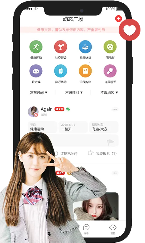 2. 可快速匹配到附近兴趣相投的约会对象,邀请一起唱歌、运动、看电影,共享趣味日常生活,随时发布动态和心情,邂逅浪漫。