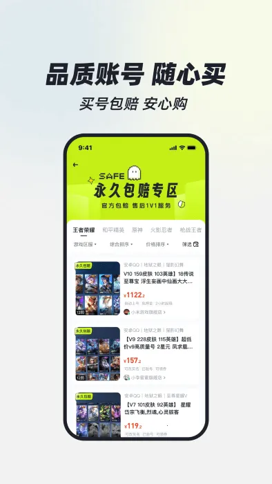 2、能轻松找到干净优质的高端游戏账号,账号种类丰富,涵盖主流游戏的高段位高皮肤账号,满足玩家短期体验与高端对局需求。