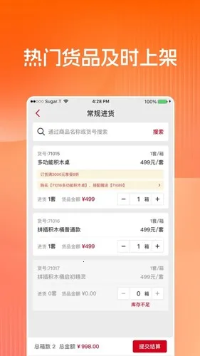布鲁可进货通是批发订货平台,商品多且工厂直发,能让用户采购实惠货物。有强大订单管理功能,可实时分析采购数据调整策略,还支持电子发票,方便账务核对,助力用户高效管理业务。