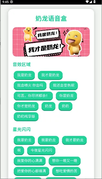 奶龙语音盒是一款很有特色的软件。它以可爱的小奶龙为主题,声音内容丰富,提供了有趣的语音交互体验。题材超可爱,界面直观易操作。热点内容与时俱进,支持自动播放、循环播放、收藏等功能,一键操控简便。能满足多场景使用需求,不管日常聊天、玩游戏还是社交媒体交流都适用,且所有内容免费。它凭借这些优势,很好地满足了用户需求,为大家带来了不一样的语音乐趣,值得下载一试。