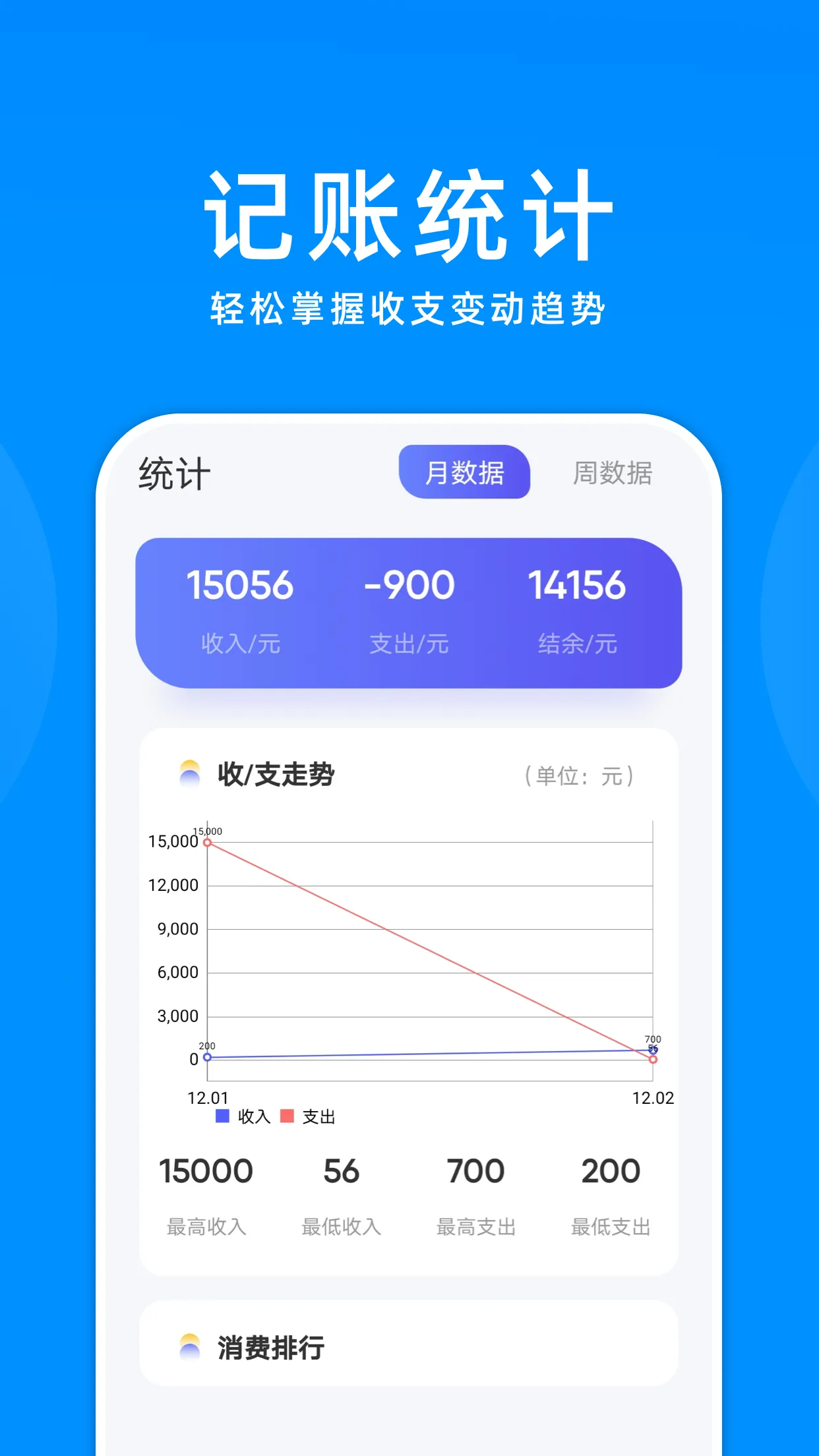 4. 操作简单便捷,记账省心,快速生成收支统计报表,查看消费流水更明确,还能设定支出预算避免超支。