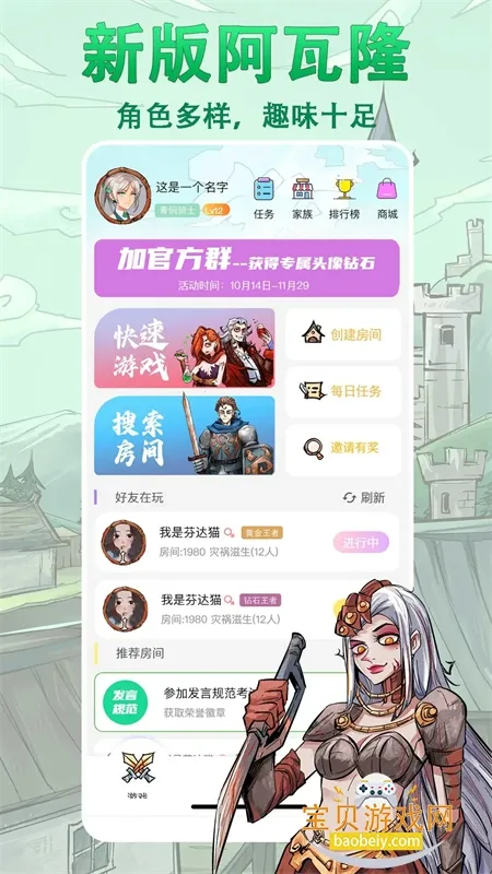 天天阿瓦隆不是网易游戏,它是北京云影互联科技有限责任公司推出的线上社交平台。这款软件能让你轻松体验趣味十足的社交桌游。它有多样角色,每个都有特殊技能和任务,充满惊喜与策略。支持语音推理,让你烧脑又刺激,还能隐藏身份,体验神秘氛围。新手友好,有简单易懂的教程助你快速上手。在这里,你可以和千万有趣的年轻玩家一起语音交友,实时互动,边聊边玩,感受线上交友的乐趣。既能锻炼大脑策略,又能通过互飙演技结交新朋友,丰富生活。还能在线体验跌宕起伏的故事情节,展示自己的演技。无论是想找乐子还是结交志同道合的朋友,天天阿瓦隆都能满足你。