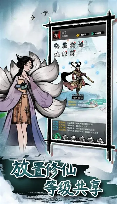 3. 放置轻松升级:放置修仙,等级共享无需时刻在线,离线也能获取丰厚修为,所有神仙共享一个境界等级,享受轻松升级乐趣。