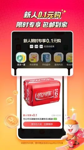 1、优惠玩法丰富:限时秒杀、1元抢不停、摇一摇等,食品生鲜1元起,还有新用户高额优惠券,让你花小钱买心仪商品。