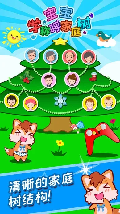 宝宝称呼家庭树APP专为宝宝设计,通过清晰家庭树结构、多样玩法及高清语音等,助孩子认知家庭关系。有儿歌学唱、语音跟读等功能,界面卡通易上手,一站式帮孩子全方面学习家庭称呼。