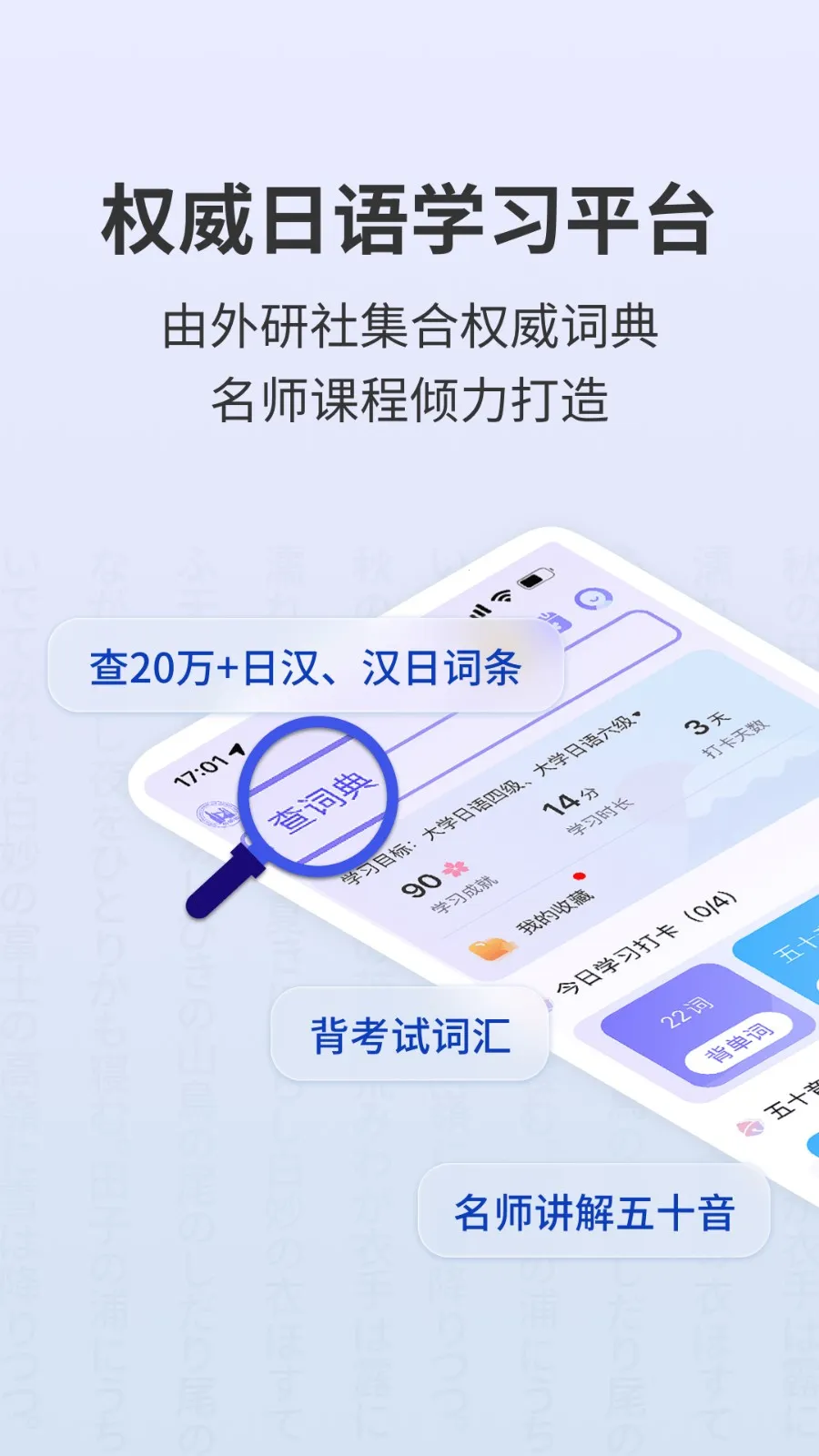 外研社大家的日语2026官方正版是一款专业日语学习软件,由上海海笛数字出版科技有限公司与外研社推出。课程覆盖全、互动性强,提供个性化学习计划,还有海量词库及多维度查词功能,助您高效学日语。
