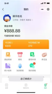 收益管理便捷:完成订单可获丰厚奖励,随时能管理余额并一键提取,收益情况清晰明了,让骑手放心跑单。