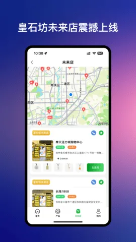 2. 全新版本APP增加与皇石坊未来店联动功能,可查看最近未来店并享受更多增值服务。