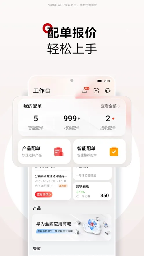 华为推出的这款软件为中小企业带来便捷安全的云办公体验。它功能丰富,涵盖配单报价、设备开局、远程运维、自主办会、营销拓客等。远程运维方便管理产品设备,营销看板可查看营销数据,移动办公能随时随地在线办公。其还具备项目管理、智能配单等优势,不断更新优化,如新增我的线索等功能,助力用户高效办公与拓展业务。
