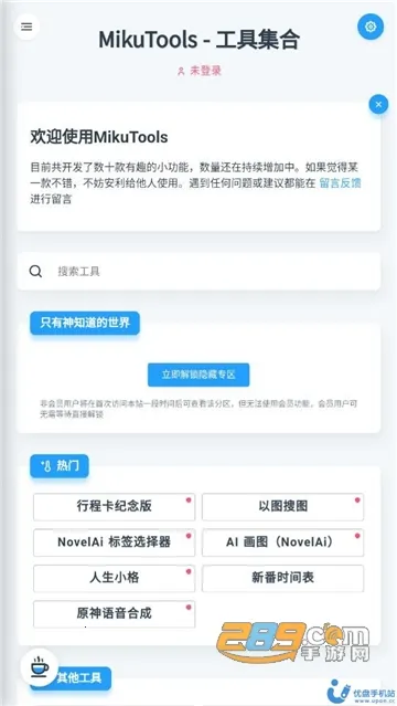 MikuTools是在线工具集合平台,开源跨平台无广告。提供视频下载、图像处理、文本转换、语音合成等超百种功能,涵盖多领域,界面简洁,支持跨平台访问与PWA离线使用,还可自定义设置。