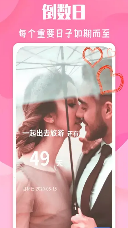 倒数日恋爱日常是专为情侣设计的辅助工具,能记录恋爱点滴,含文字图片,可设纪念日提醒。有情侣社区、专属存钱罐,还能制定计划、玩默契游戏,帮情侣珍藏美好瞬间,增进感情。