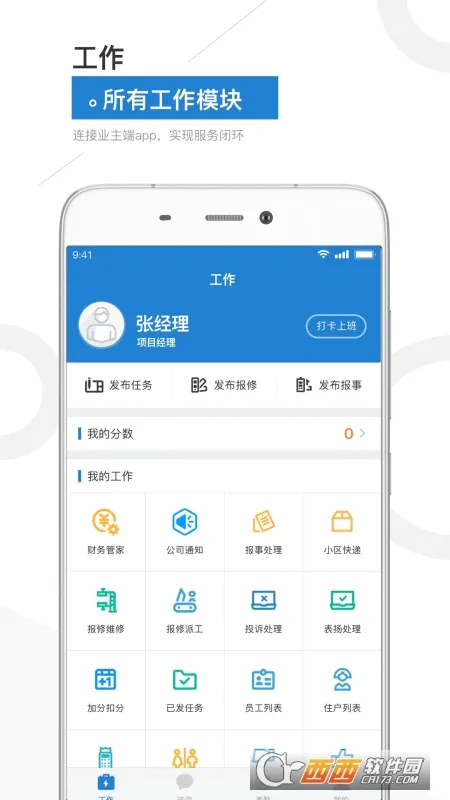 这款软件有着实用的上下班打卡功能,一键点击就能记录每日上班状态,清晰记录上班工时数据。它还通过列表形式管理员工名单,记录员工联系方式,方便灵活联系同事处理问题。支持线上记录小区快递信息,从多方面提供暖心物业服务,提升服务质量。