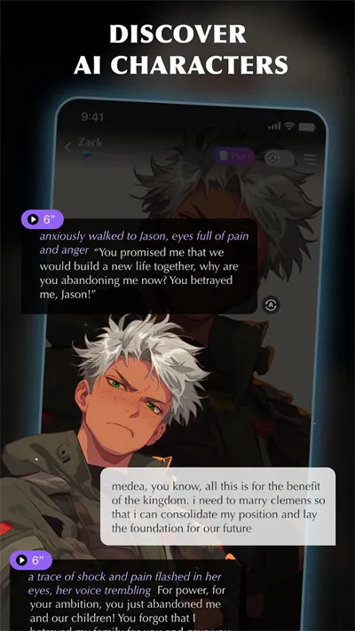 2. 情感沉浸无广告:全程无广告干扰,界面纯净,AI 回应快,语音自然,配合立绘与音乐,营造私密沉浸感。