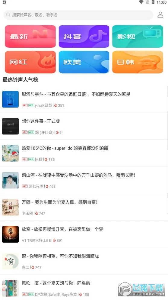 1. 搜索超便捷:使用搜索功能,能在海量收藏中快速找到心仪铃声,帮用户准确定位喜欢的铃声。