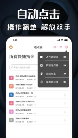 3. 功能丰富:支持预设动作,自由添加脚本,能模拟单点、长按、连点和双击等多种动作。