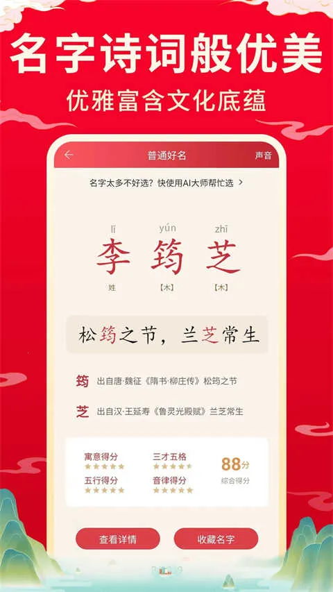 4. 便捷收藏:支持自定义收藏夹,方便保存对比心仪名字,轻松确定最终选择。