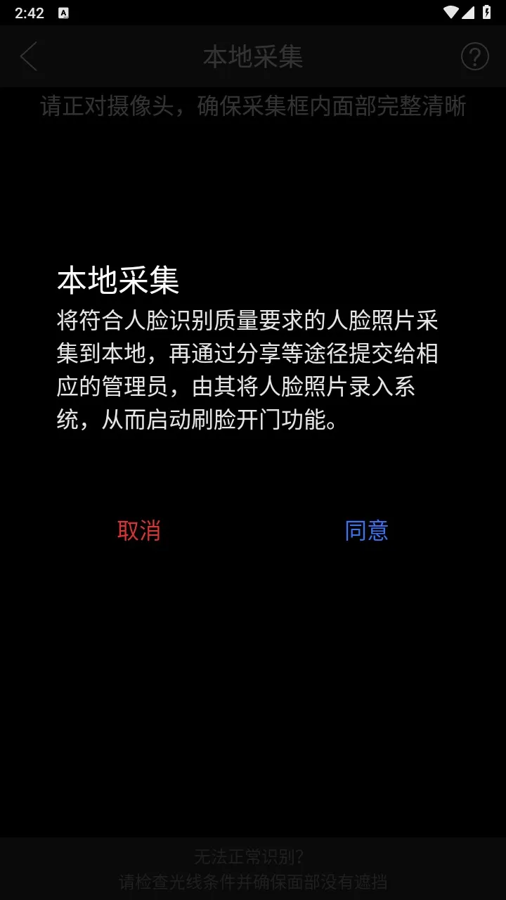 3. 适用场景广泛,无论是小区门禁还是上班打卡等,都能轻松实现,为生活各方面提供便利,还可利用信息化技术录入人脸照片,选择保存到本地或分享到其他应用。