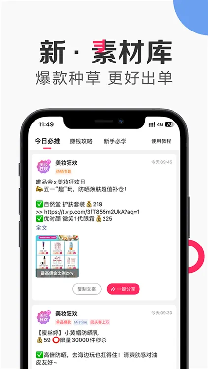 唯享客是唯品会旗下社交分销app,有海量精选低价好物,涵盖多品类。分享商品出单能赚佣金,还有隐藏优惠券、专属津贴等福利,官方保障,品质无忧,邀好友注册也有奖励。