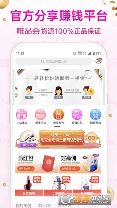 官方保障:这是唯品会官方APP,商品皆来自唯品会,全是知名品牌,品质过硬!无需囤货缴费,在唯品会直接下单,佣金实时到账,可放心分享赚钱。