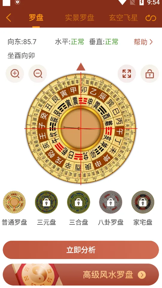 2. 支持专业实景分析,能精准电子罗盘定位,快速测风水。