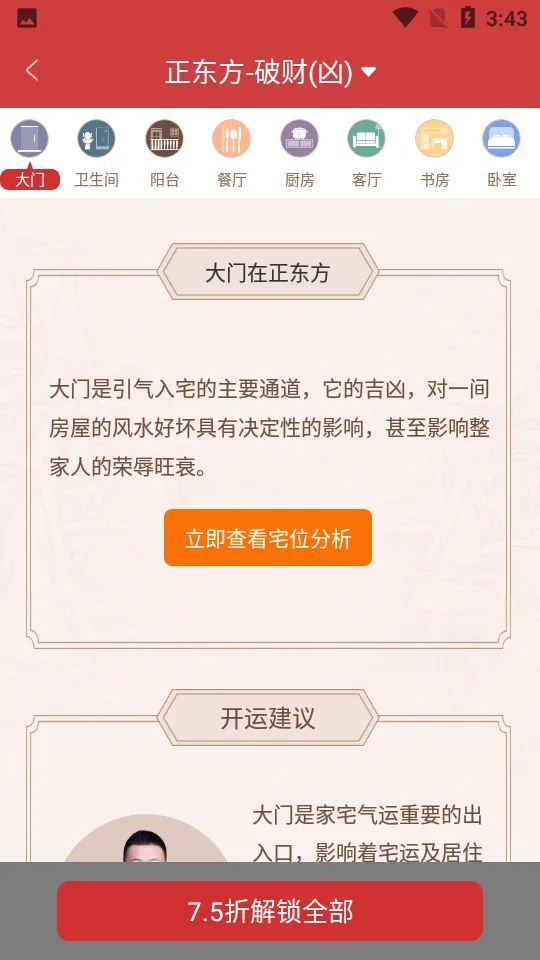 它能帮你解决很多问题,比如精准电子罗盘定位,一键识别方位吉凶,准确招财化凶煞。通过实景分析专业指南,还能私人定制趋吉避凶,个性化改善室内风水。有教学指南实景教程,能一键找到专属你的风水财位。风水学堂简单易懂,助你轻松成为风水达人。不过要记住,风水仅供娱乐,不可全信哦。
