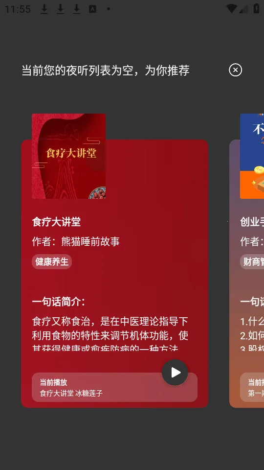 圆梦夜听app是优质有声书应用,有数千本各类有声书资源,含多知名出版社等经典作品。具备海量资源、智能推荐、完善听书功能等,采用先进音频技术,支持多项操作,为用户提供精彩阅读体验。