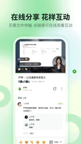 4. 花样表情互动:观看视频时,可在时间轴上逐帧评论或添加表情,让视频更有趣,有效提升沟通效率,增添互动乐趣。