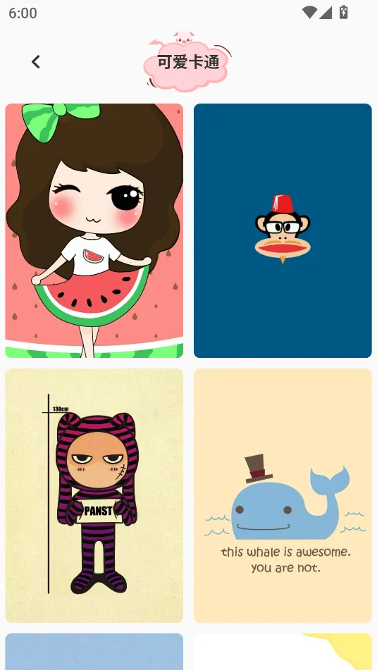 这里风格多样,能满足你对可爱风格壁纸的多元喜好和个性化需求。丰富的素材库,总有一款能直击你的内心萌点。细致分类节省查找时间,提升效率。壁纸画面精致,色彩明艳动人,点亮手机屏幕,提升美观度和视觉吸引力。而且它适配多种机型,界面设计简洁,操作轻松上手。还支持一键设置和收藏,方便后续查看与使用。无论是日常使用还是想打造专属壁纸,它都能轻松搞定,让你的手机桌面萌趣十足!