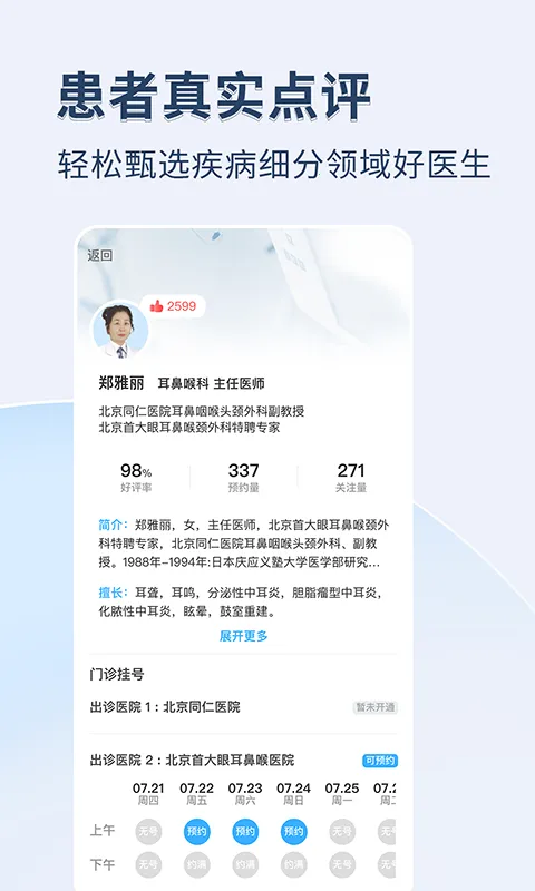 优质号源:提供更多优质号源,便于用户随心筛选并预约挂号。