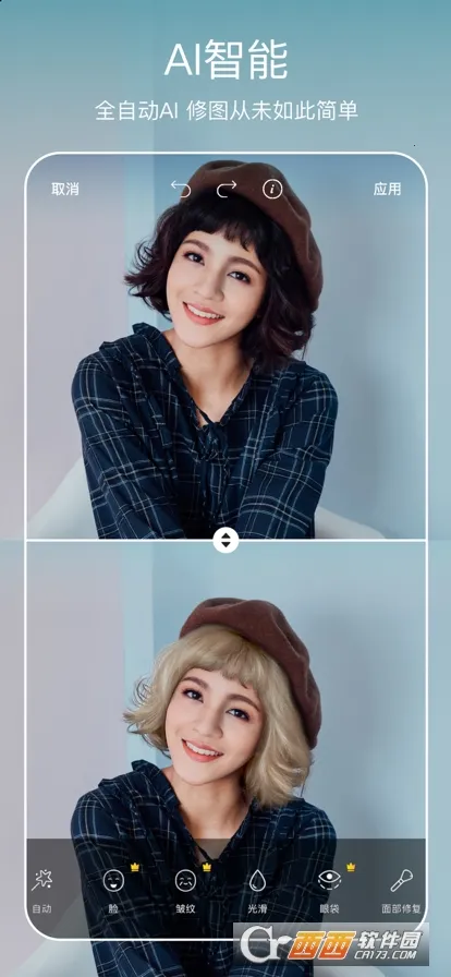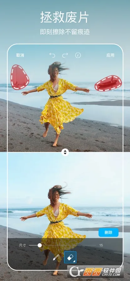 2、多样变换能力:具备缩放、旋转、翻转、倾斜、应用和扭曲等能力,可改变摄影作品。