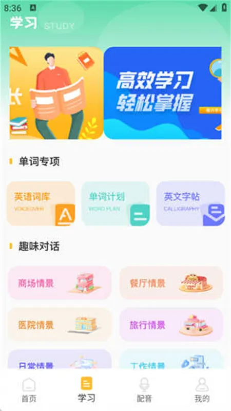 2. 全新方式:摆脱枯燥传统学习方式,通过配音学习英语提升口语听力,支持离线配音、离线合成、生词翻译,随时随地玩转配音。