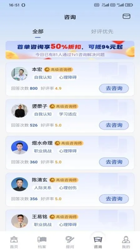 3. 有强大的线上专家咨询模式,自定义编辑信息发起咨询,方便解决疑惑。