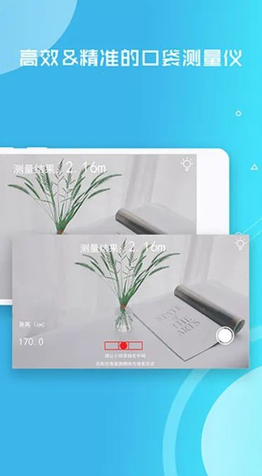 2. 测量超精准,利用手机相机和传感器技术,结合相机镜头高度与倾斜角度计算,保证测量准确。