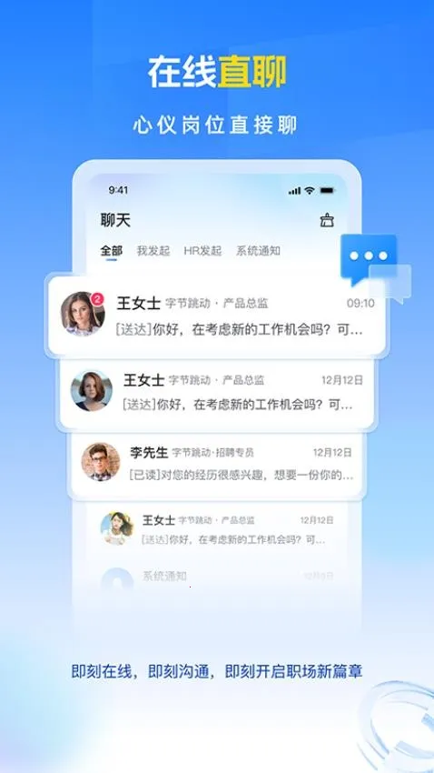 3. 在线实时沟通:支持企业与候选人随时进行实时交流,及时了解求职意向和期望,解答疑问,提升沟通效率。