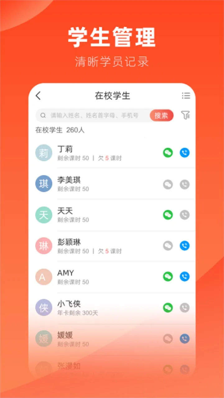 2. 支持多种课程类型管理,满足不同培训领域需求,确保课程安排高效灵活。微信招生功能拓宽招生渠道,提高招生效率。