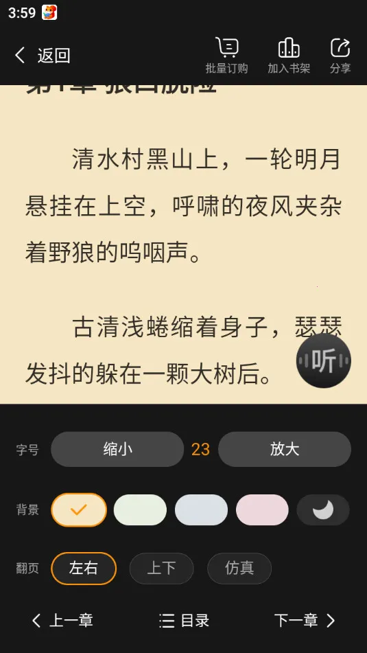 贴心的听书功能:支持各种情景模式朗读,让你能随心所欲听书,充分释放双手,享受别样阅读乐趣。