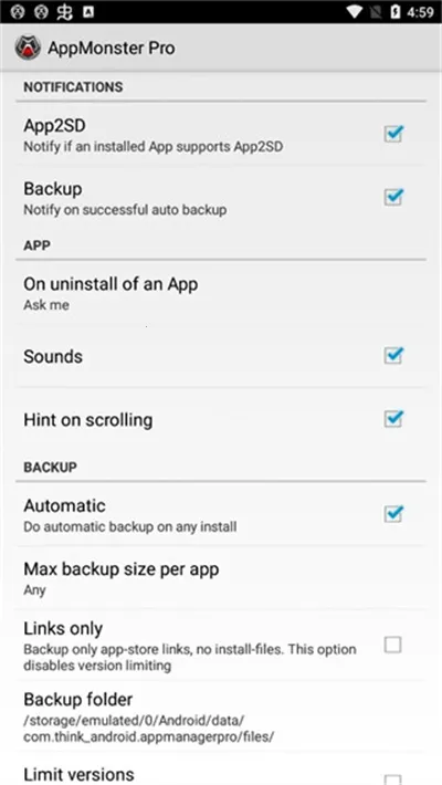3. 自动备份与定时计划:能设置自动备份计划,定期备份新安装或更新的应用,有效避免因遗忘造成的数据丢失。